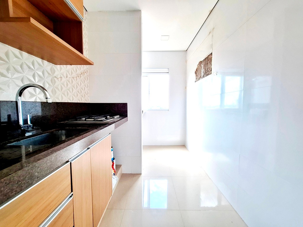 Apartamento contendo 2 quartos com armário, banheiro social com armário e box blindex, sala para 2 ambientes com painel de TV e sacada, cozinha com armário planejado, lavanderia, garagem para 1 carro.