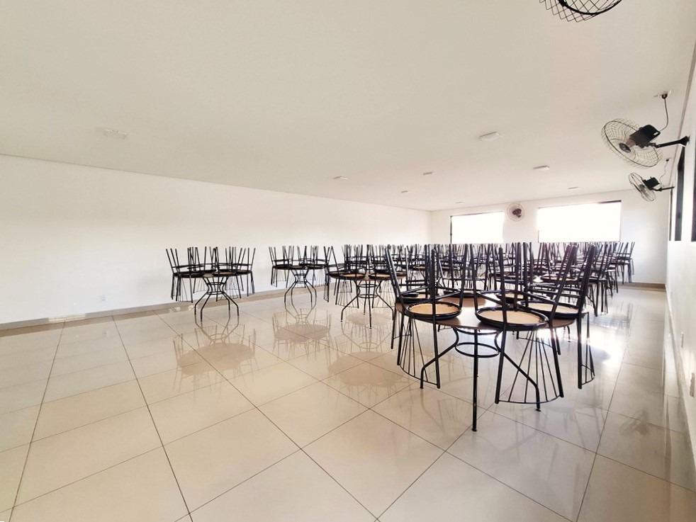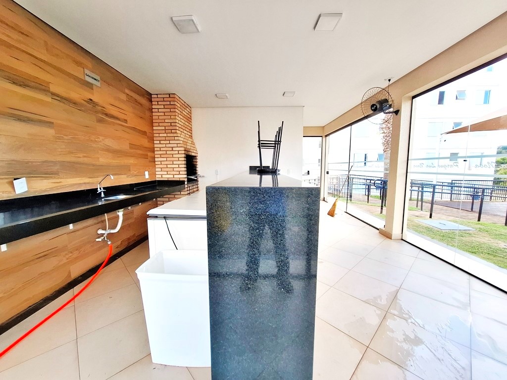 Apartamento contendo 2 quartos, banheiro social com armário, sala com sacada, cozinha, lavanderia, garagem para 1 carro.