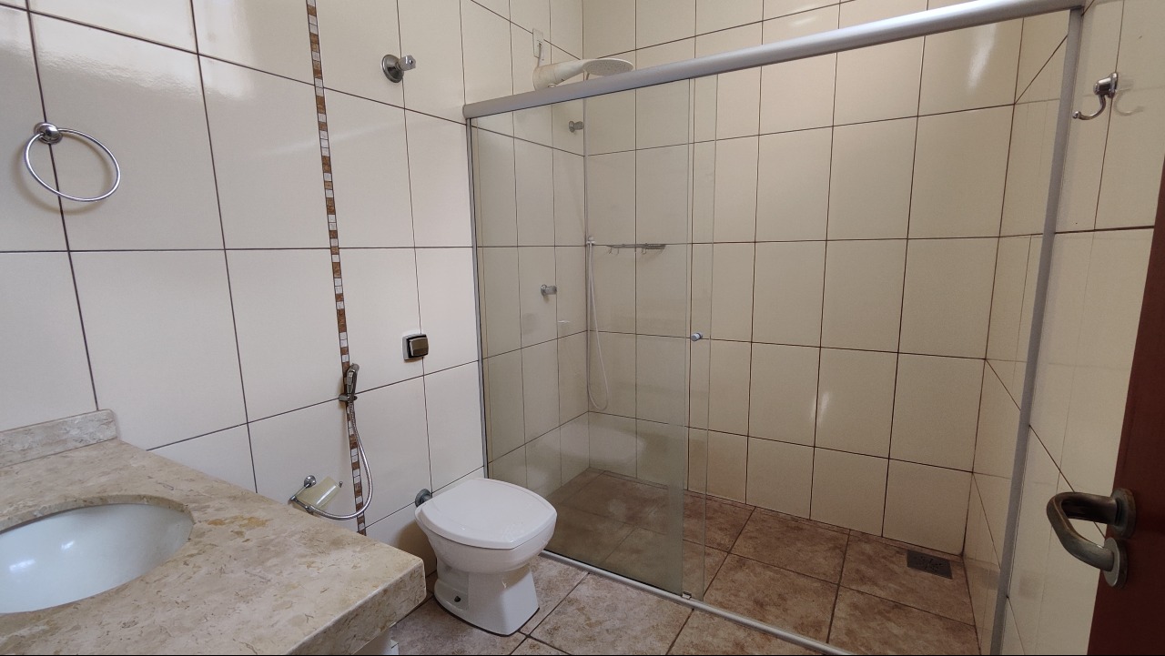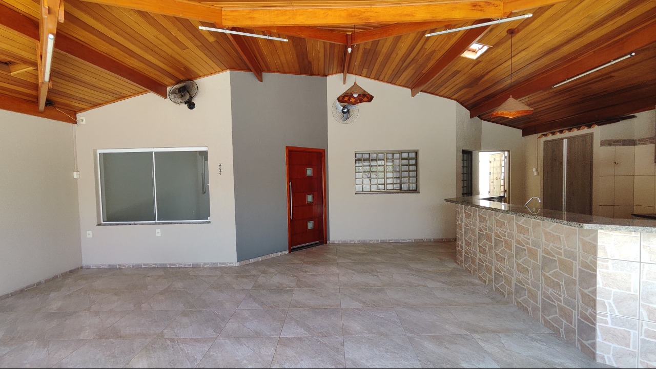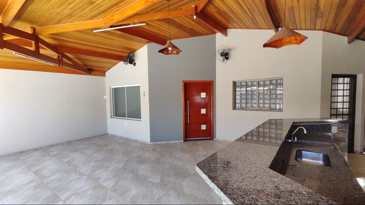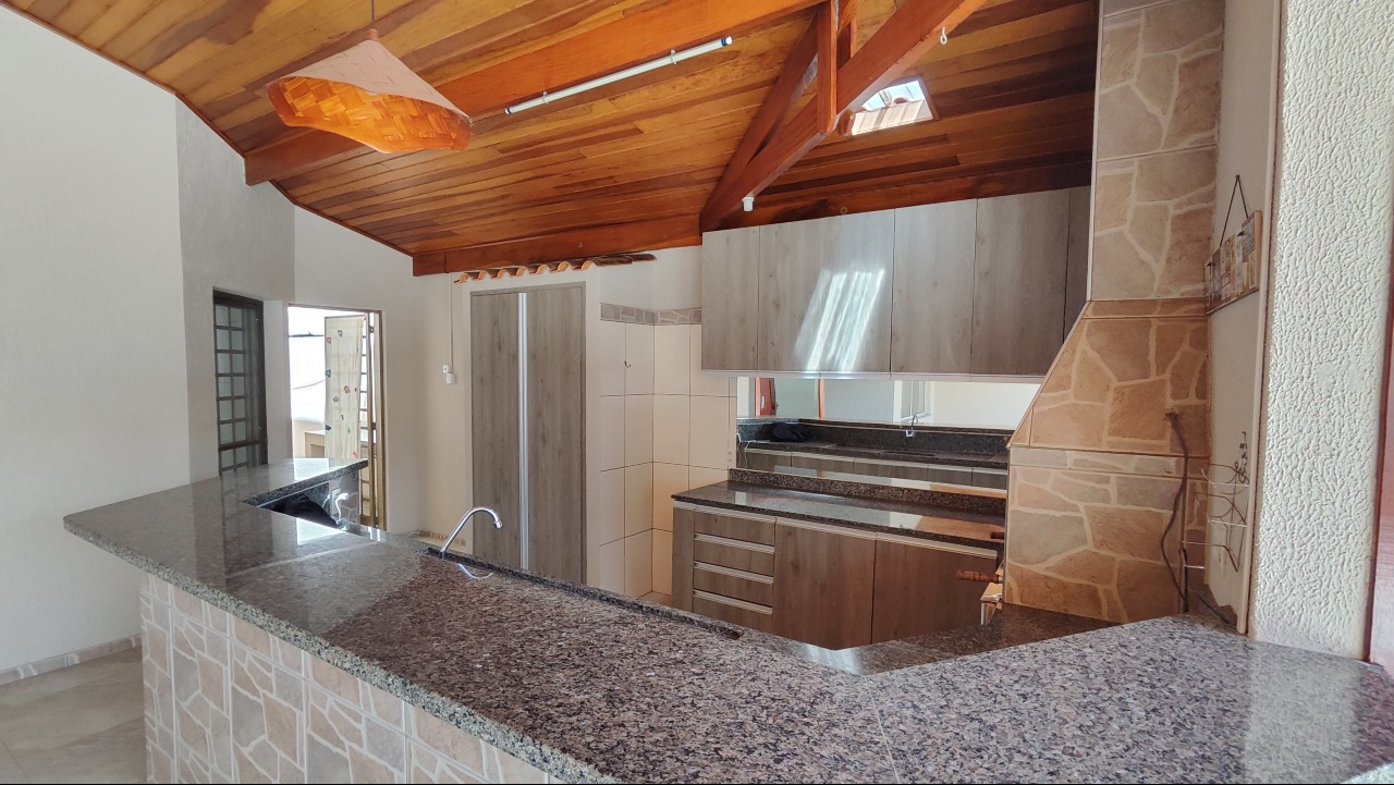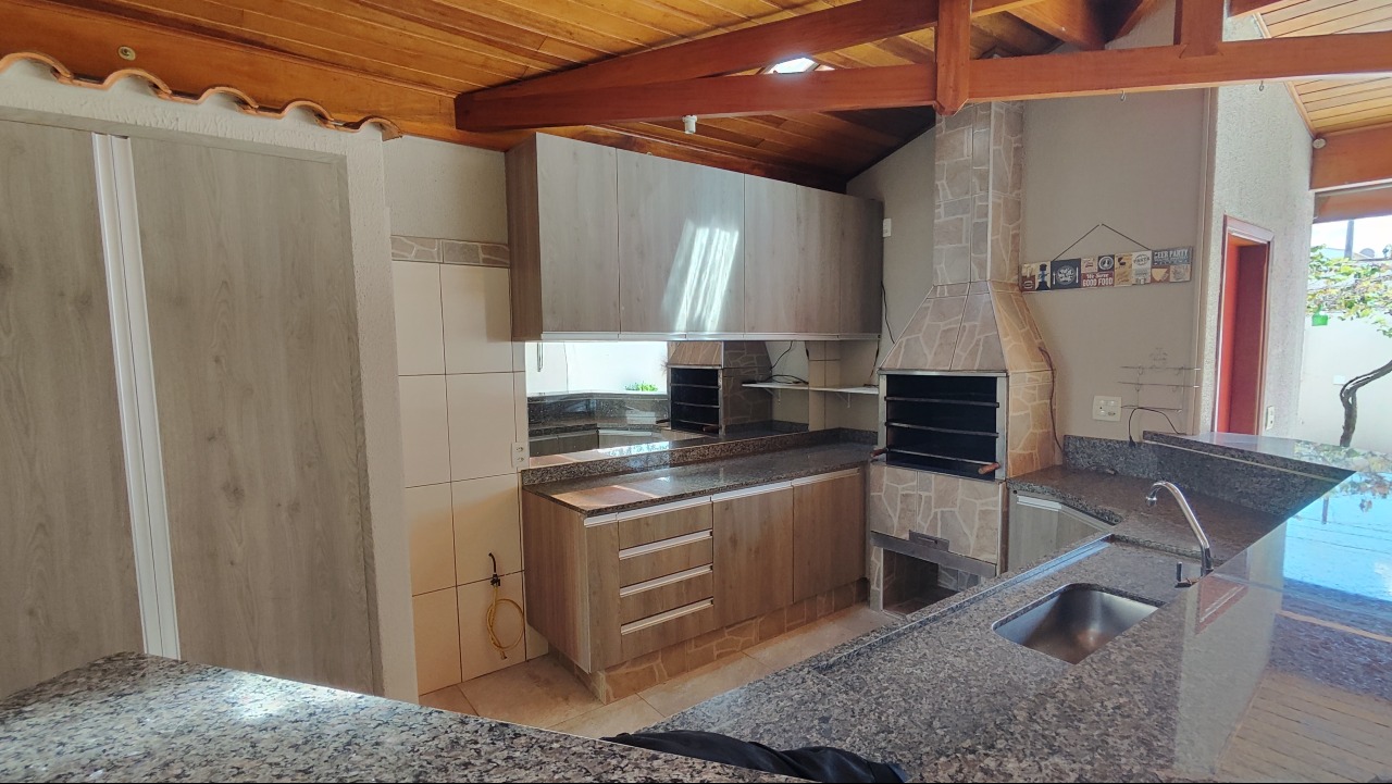 3 quartos sendo 1 suíte com closet, banheiro social, sala, jardim de inverno, cozinha planejada, área de serviço com armários, espaço gourmet com churrasqueira, garagem para 7 carros sendo 3 cobertas.