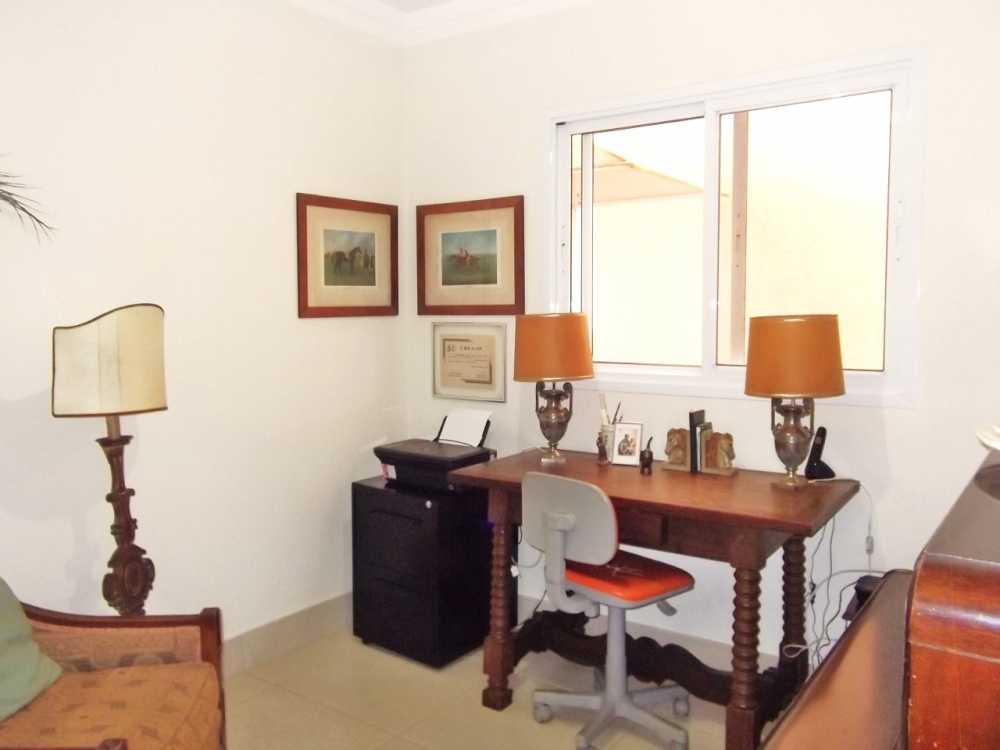 4 quartos sendo 3 com armários e 1 suíte, banheiro social, sala para 3 ambientes, escritório, lavabo, cozinha planejada, área de serviço com armários, banheiro, quintal, garagem para 4 carros sendo 2 cobertos.