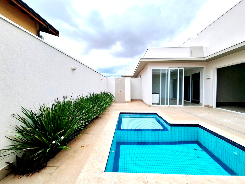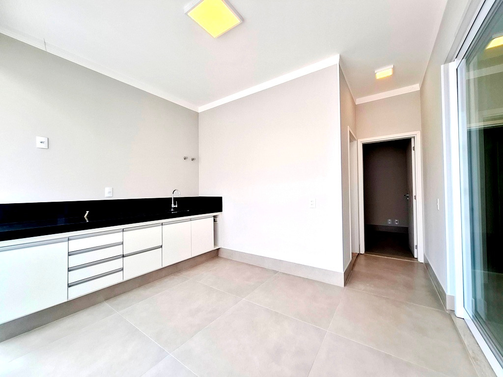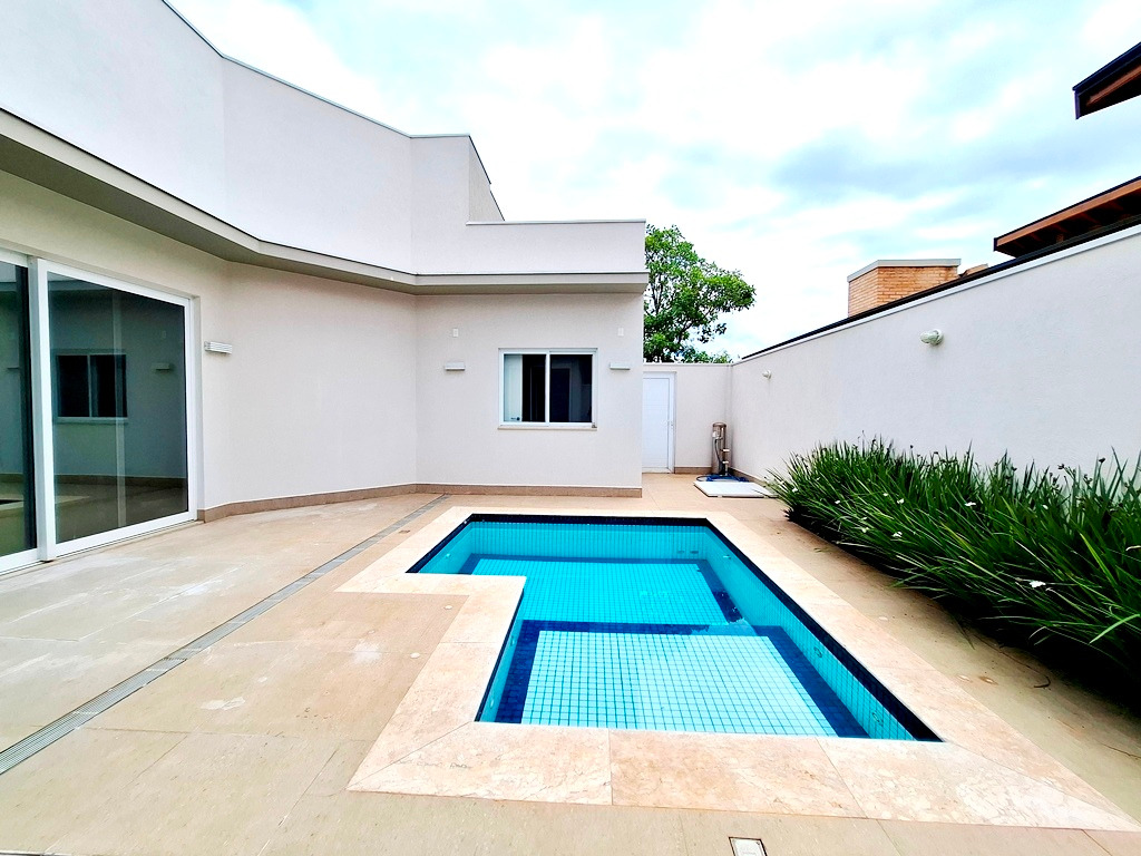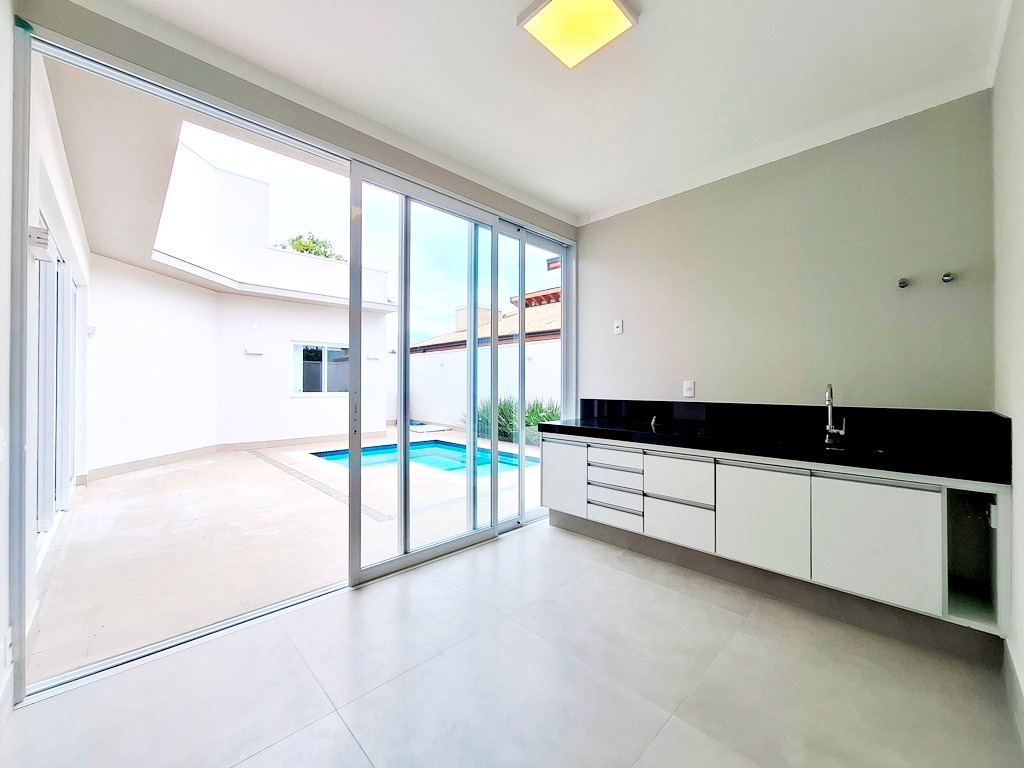 Casa contendo 4 quartos sendo 1 suíte com armário e 2 suítes com closets e armários, sala para 2 ambientes e com painel de TV, escritório com armário e mesa, lavabo, cozinha com armário planejado, microondas, forno embutido, coifa e mesa embutida, lavanderia coberta e com armário, área gourmet contendo cozinha, banheiro, piscina e quintal, garagem para 4 carros sendo 2 cobertos.