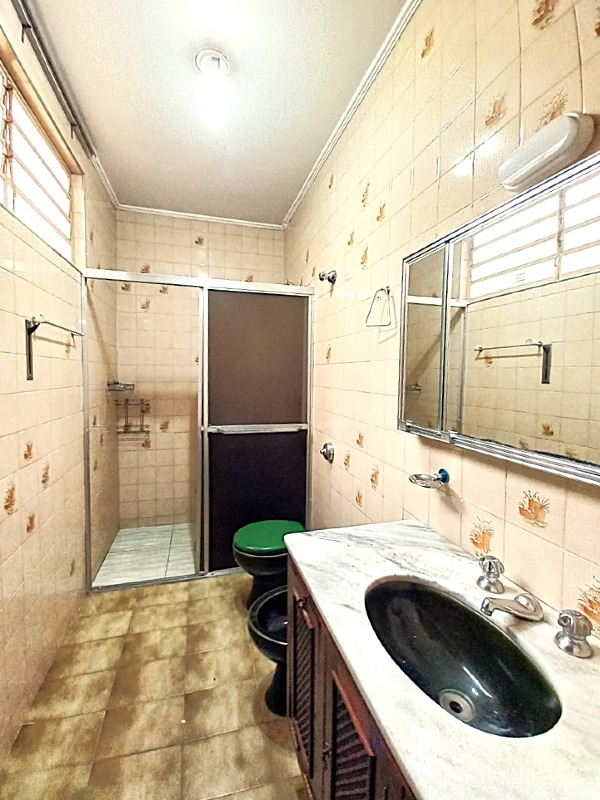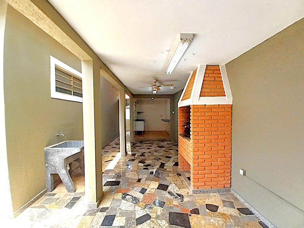 3 quartos sendo 2 com armários e 1 suíte, banheiro social com armário, sala para 2 ambientes com bar e estante de alvenaria, cozinha com armário, área de serviço coberto, churrasqueira com pia, edícula com 1 quarto, banheiro e cozinha, garagem para 3 carros sendo 2 cobertos.