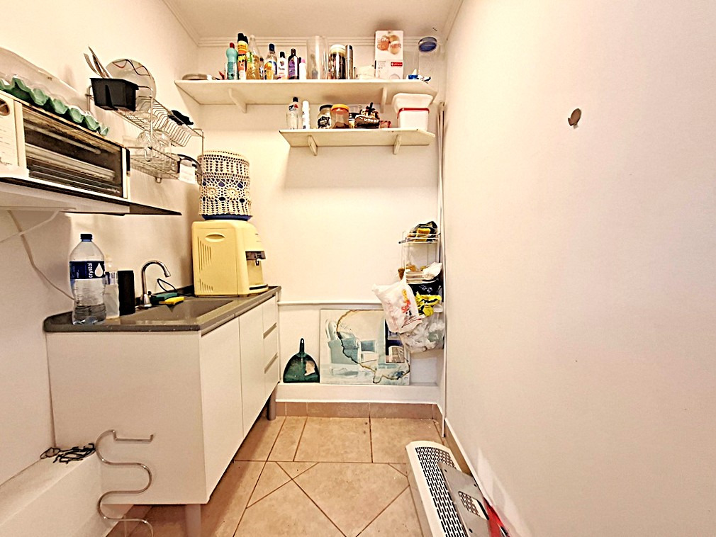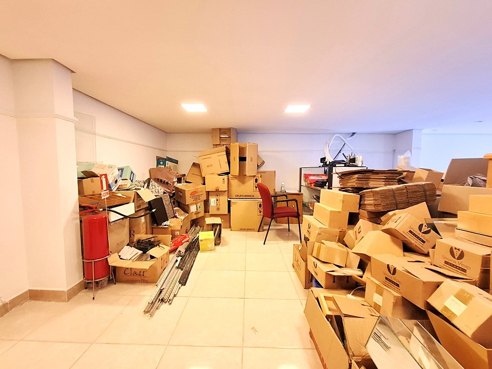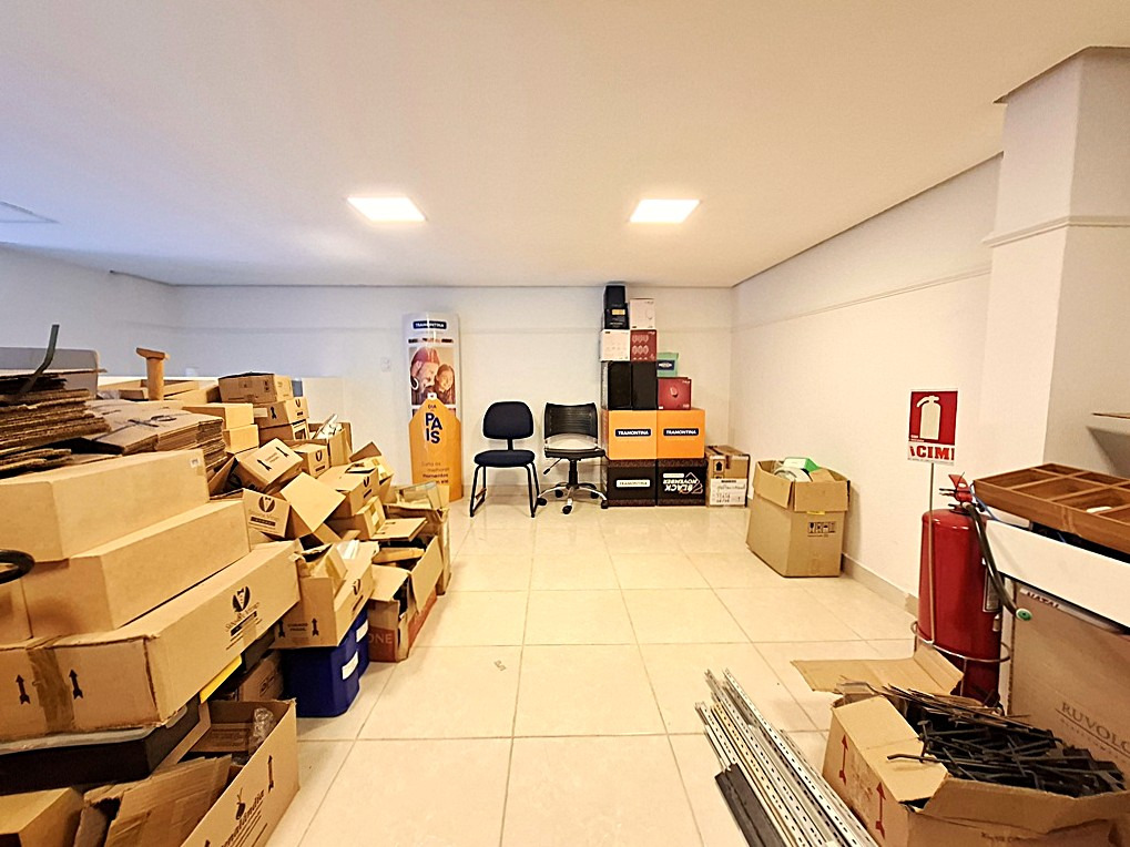 Salão comercial contendo 1 sala com armário, banheiro, cozinha e mezanino.
