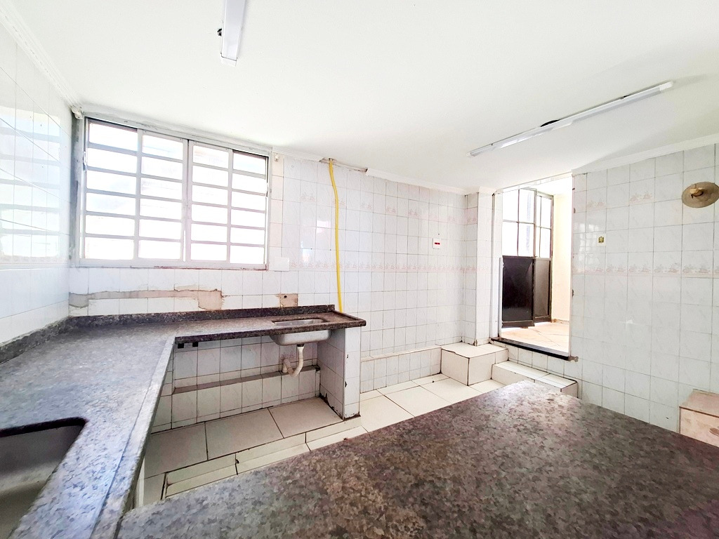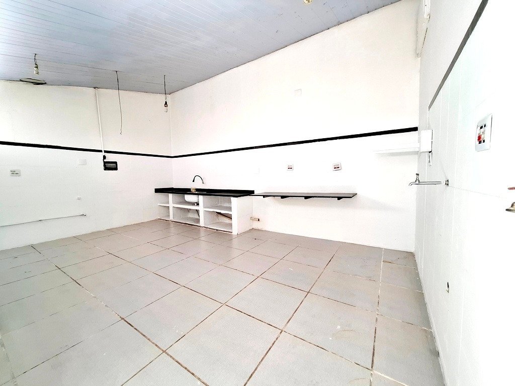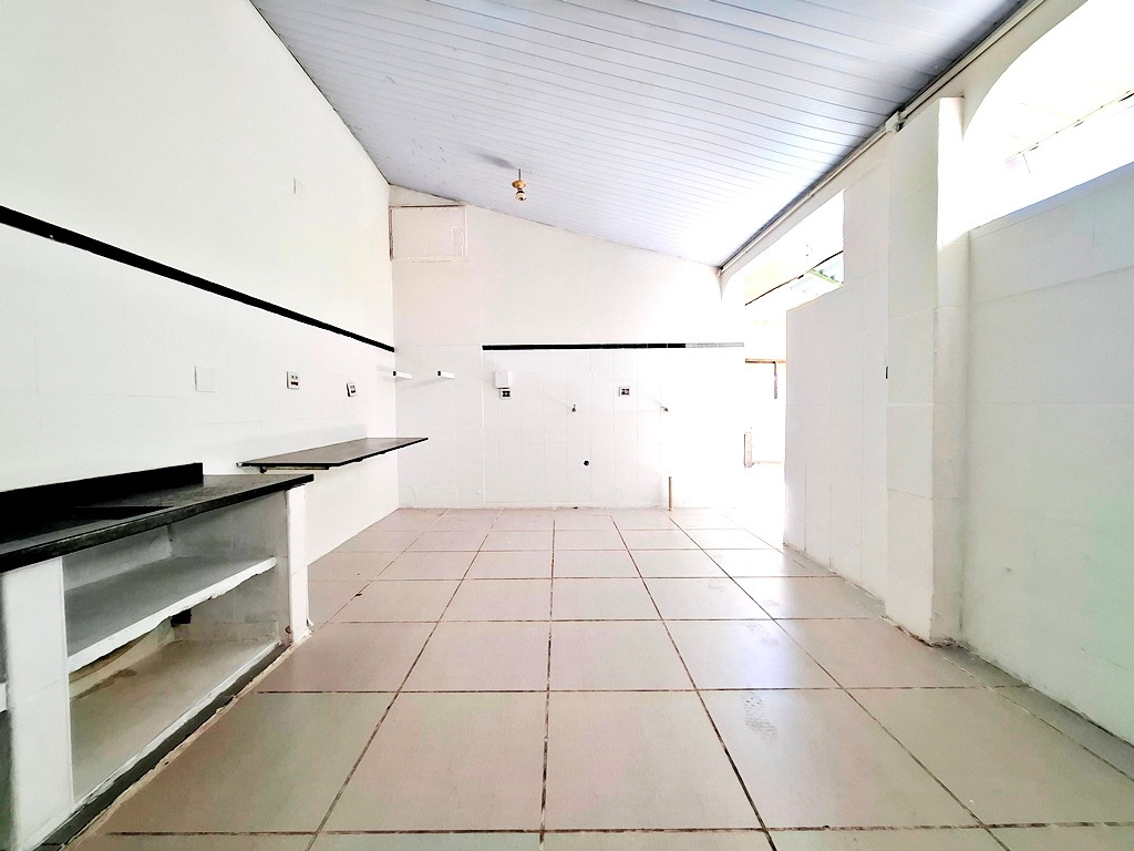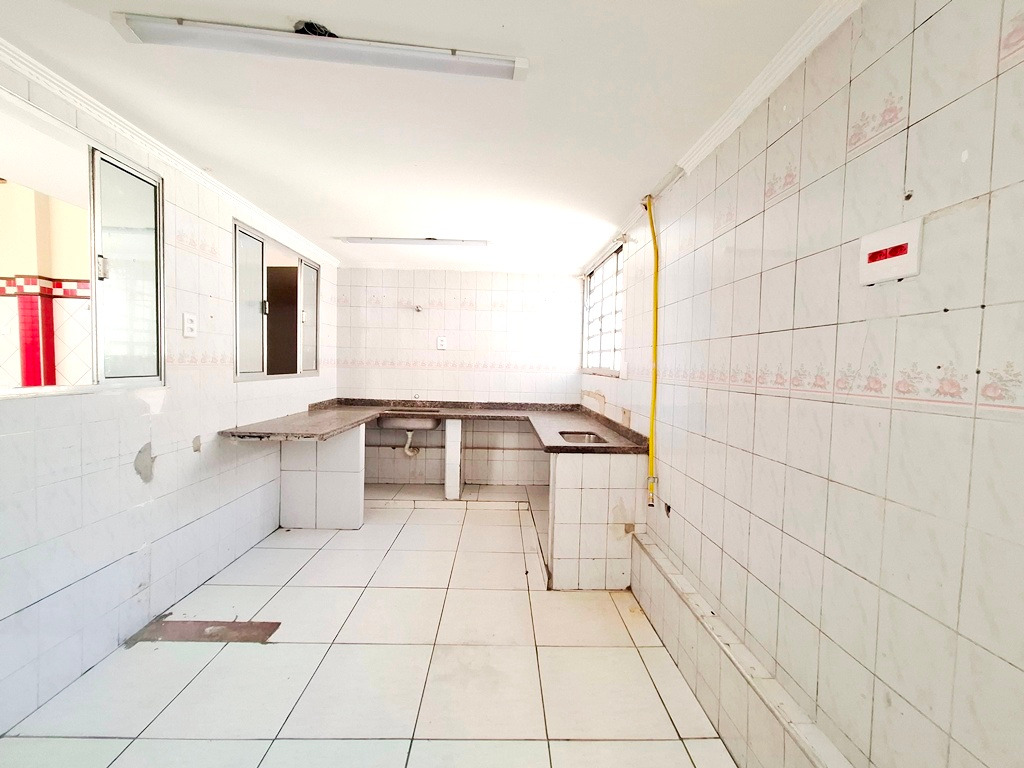 Salão com 200 m² contendo 2 banheiros, cozinha e na parte externa com banheiro, cozinha, despejo e área de serviço coberto.